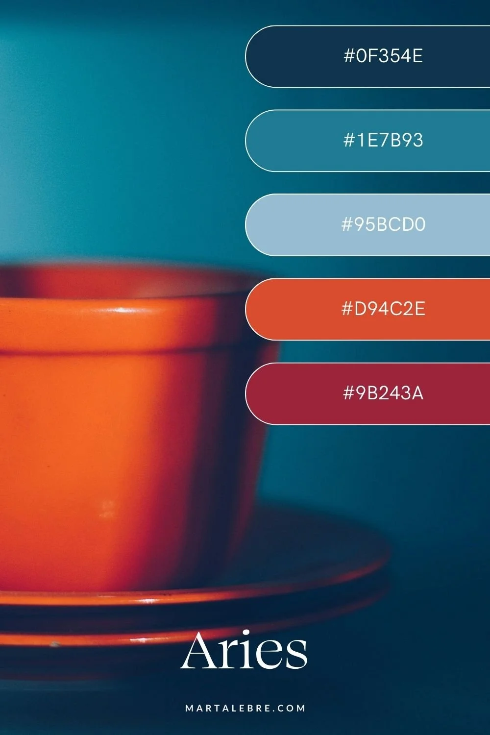 To create a strong Aries brand, use a bold and motivational voice. Opt for a color palette dominated by bold reds, fiery oranges, and bright yellows to convey energy and action. Fonts should be bold and sans-serif to enhance the sense of strength and clarity.