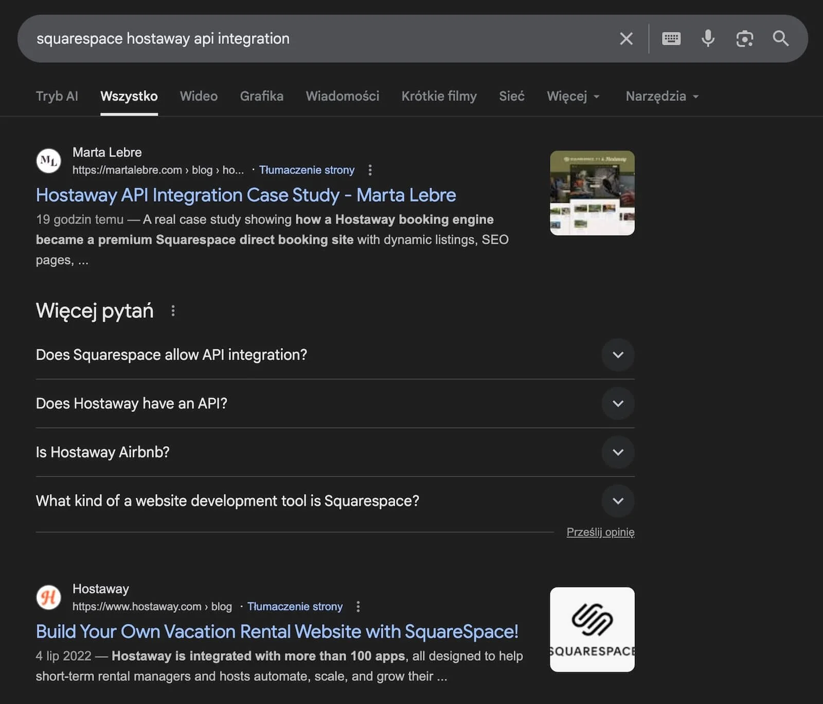 I recently published a blog post on my Squarespace site documenting a technical integration I built for a client. Within 24 hours from submitting to Google Search Console, my blog post ranked #1–2 on Google for "Hostaway API integration Squarespace." No backlinks. No SEO plugins. Just clear, helpful content that answered a question better than anything else available.