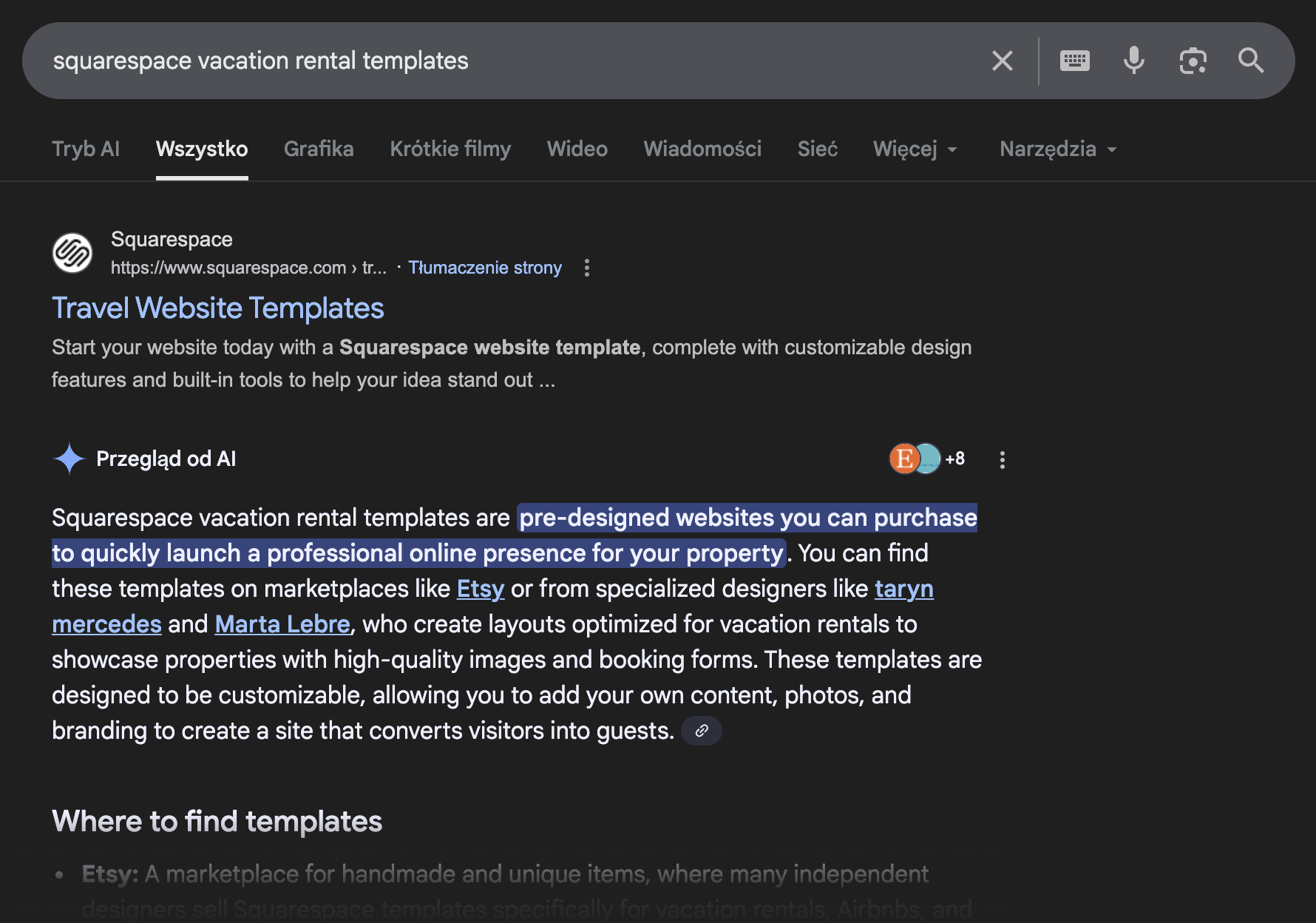 Google’s AI Overviews are changing how results appear. Squarespace sites can show up in those summaries—but only if your content is structured with clear headings, FAQ-style answers, and schema where possible. The lack of native schema customization is a drawback, but with some smart content strategy, Squarespace sites are still competitive.