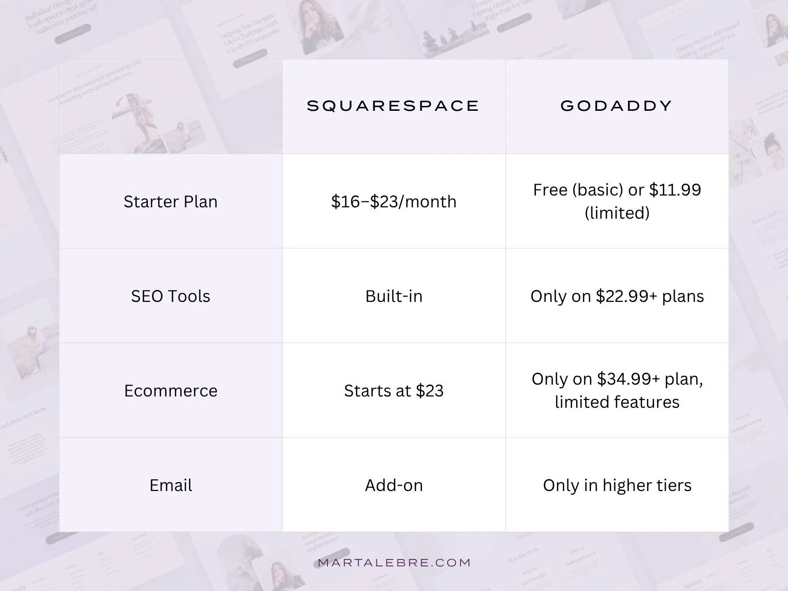 Is Squarespace or GoDaddy better for therapists, coaches and service providers?