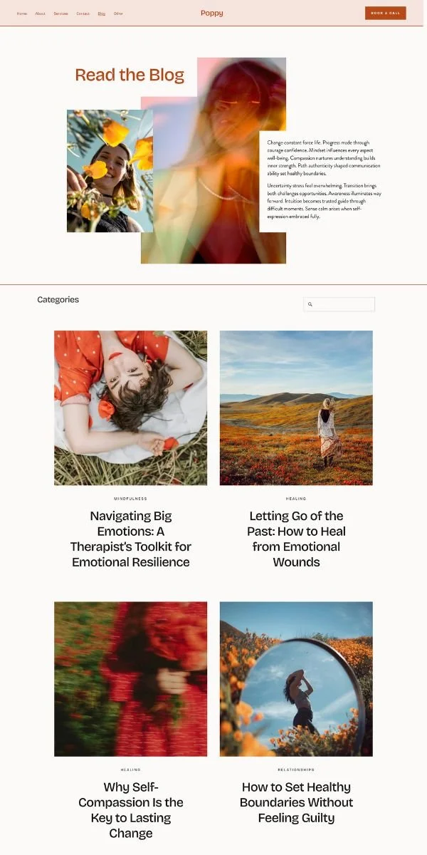 Yes. Poppy’s warm, grounded design works beautifully for therapists, counselors, and wellness pros who want a modern, approachable online presence.