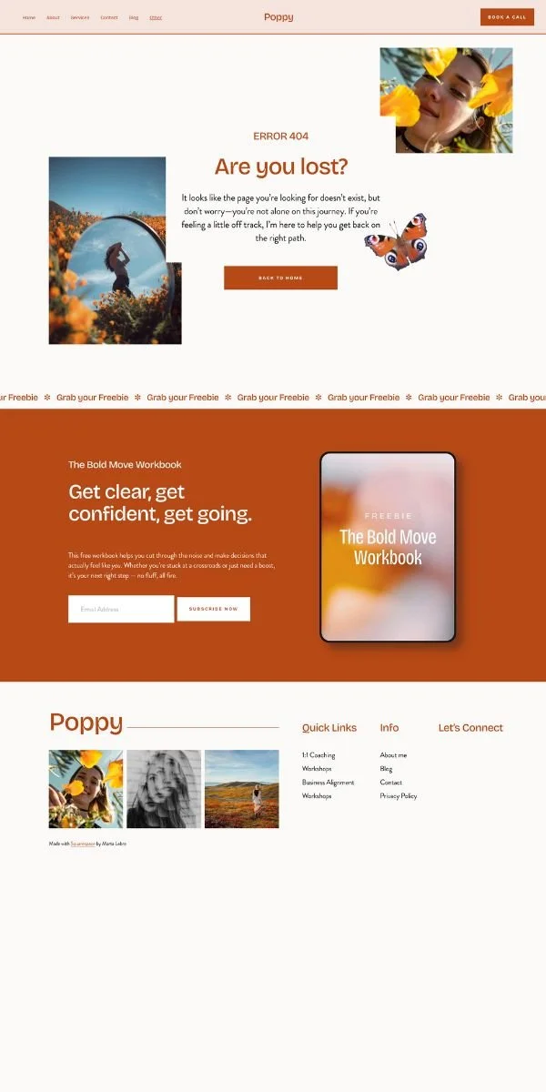 Poppy is the perfect Squarespace coaching template for coaches, creatives, and purpose-driven personal brands who want a website that feels modern, vibrant, and unforgettable.