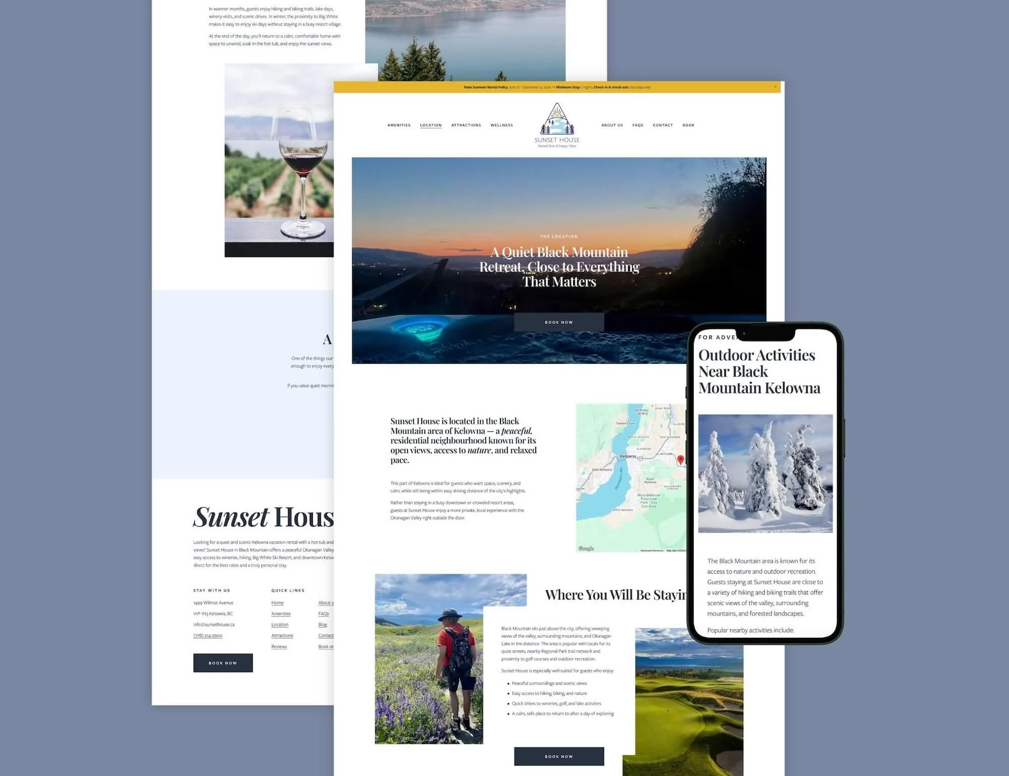 Content was structured around Kelowna + Okanagan searches and nearby attractions to build local relevance.